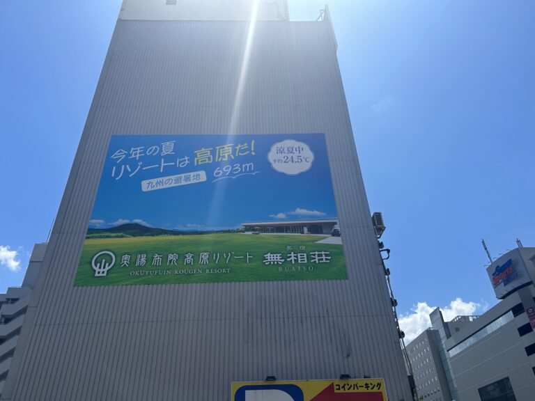 屋外広告福岡市中央区天神 リゾート施設広告看板竣工2024年春 -