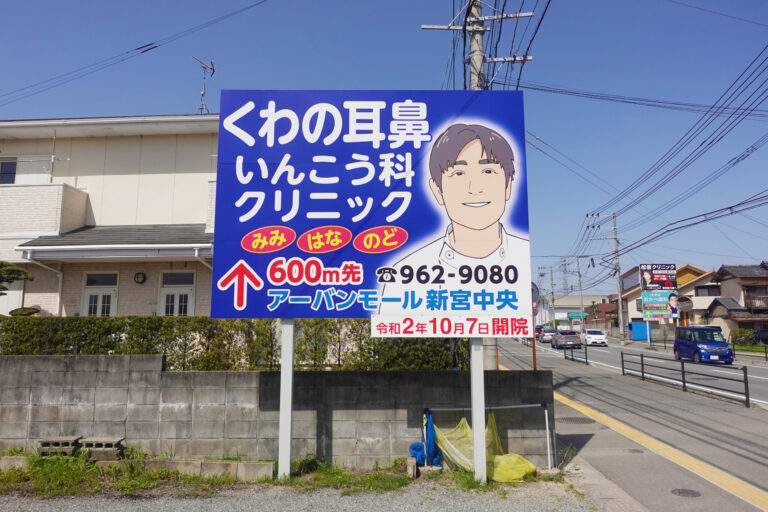 ロードサインクリニック看板院長イラスト新宮町耳鼻咽喉科様広告・誘導看板